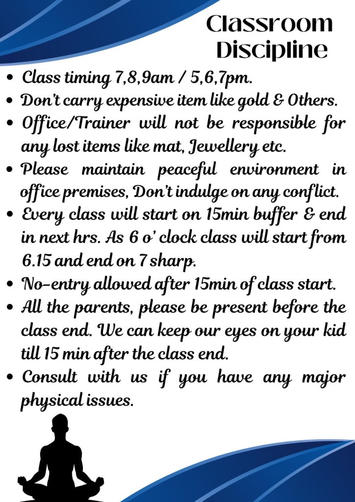 Ø Morning yoga, afternoon yoga and evening yoga class.